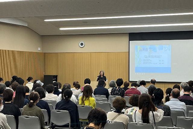 - セミナーでは、翔子さんの力強い揮毫のパフォーマンスと、来場者と笑顔で関わる姿に大きなパワーをもらいました。金澤泰子先生のお話の中で印象的だったのは、翔子さん自身が「ダウン症は書道が上手い人」と語っていたというエピソードです。親として悩むことは誰にでもあると思いますが、本人の認識によって気持ちが軽くなることがあるのだと感じました。また、一人暮らしの話では、商店街で多くの人と関わりながら支えられて生活している様子を聞き、地域で暮らすことの意味を改めて学ぶことができました。 一人ひとりが互いに力を与え合い、つながりを大切にする社会を少しでも実現できるよう、私自身も人とのつながりを大切にしていきたいと思います。
