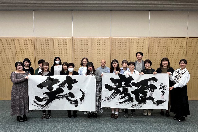 - 今回のセミナーを通じて、翔子さんの明るく天真爛漫な笑顔、力強くも繊細な揮毫のパフォーマンス、そして会場全体を包み込むような温かいダンスから、たくさんの幸せのパワーをいただきました。 見ている人が自然と笑顔になっていく様子に、私の心もじんわりと温かくなり、「もっと頑張ろう」と前向きな気持ちになりました。また、金澤康子先生のお話と翔子さんのパフォーマンスを通じて、「人と比べることがすべてではない」「自分らしく生きることが大切」ということを改めて実感しました。そんなお二人から受け取った思いを、私はどんな形で返していけるだろうかと考える時間にもなりました。 障害の有無にかかわらず、お互いが支え合い、影響し合えることの素晴らしさを感じ、一人ひとりの良さを大切にしながら、助け合って生きていける社会をつくりたいという思いがより一層強まりました。 私は、そんな“つながり”の温かさを広めていける社会福祉士になりたいと心から思いました。また、同窓生の皆さまと過ごす中で、福祉に対する熱い思いを伺い、いつかそんな素敵な同窓生の皆さまと並んで仕事ができたらと願っています。貴重な時間をありがとうございました。
