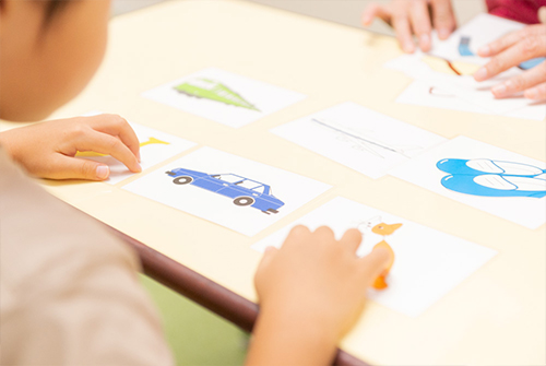 「楽しい」「やってみたい」と子ども自身が感じられるような工夫を常に考えています。たとえば、絵本やおもちゃ、手作りカード、タブレットなどを用いて、言葉だけでなく視覚的・触覚的にも働きかけるようにしています。単に音や発音を練習するのではなく、子どもが意味を理解し、相手とやり取りする過程を大切にしています。