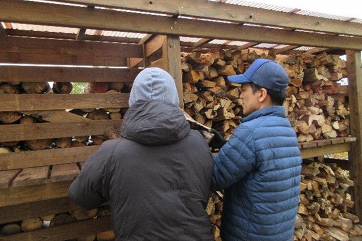 はい。始めは小原地区の喫茶店に通って「どこか木を切っていいところを紹介してもらえませんか」とお願いして回ったりしていました。地域の方も最初は戸惑われたようですが、次第に理解してくださって「こういう加工業者さんがいるけど紹介しようか」「こういうふうに薪を集めたらどう?」とか、いろいろな方が貴重な情報を教えてくださって、小原の人たちの温かさを感じました。また、まずは私たちスタッフが木を切る技術を身につけなければと考え、チェンソー資格取得をめざしてチェンソー研修会などで学びました。