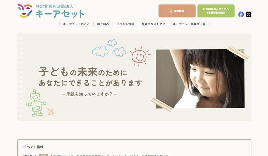 さまざまな事情により、家族と離れて暮らしている子どもたちは全国に約4万2000人。そのような子どもたちが里親家庭で健やかに育つように、NPO法人キーアセットは包括的な里親支援事業を展開しています。