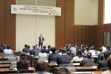 3月11日(土)「初対面の方等と円滑なコミュニケーションをとれるような術を学べるセミナー」と題し、ミッドランドホールにおいて、タレントの石田 靖 氏による講演会が開催され、63名が参加しました。