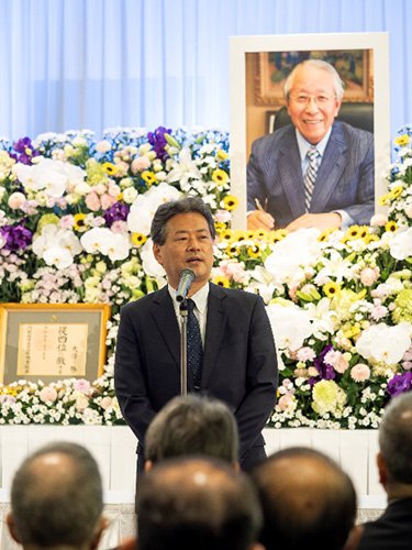 最後に、喪主大澤敏氏より、「父は最後に『自分は多くの人に支えられて生きてきた。ジグザグではあったけど、その中で人間の持つ優しさを身に染みて感じてきた。最後は情熱と優しさが人を動かすのだと思う。』と語った。多くの方々に支えられ、91年間前向きに生きてこられたこと、最後まで現役を続けさせていただきましたことに深く感謝します。」とお礼の言葉が述べられました。