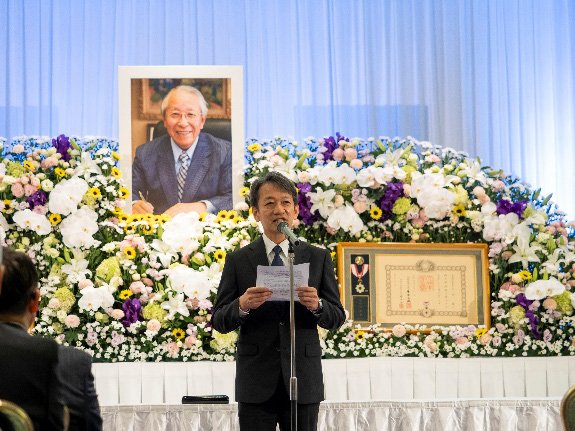 「先生の力強いリーダーシップのもとに、こんにちでは本学をして『ふくしの総合大学』として揺るぎない地位と、その礎を築かれました。また、平成8年には本協会理事にご就任いただき、24年もの永きに亘り、全国的視野に立たれての私学振興に多大なるお力添えをいただきました。ご生前の数々のご功績に対し、敬意と感謝の念を捧げます」