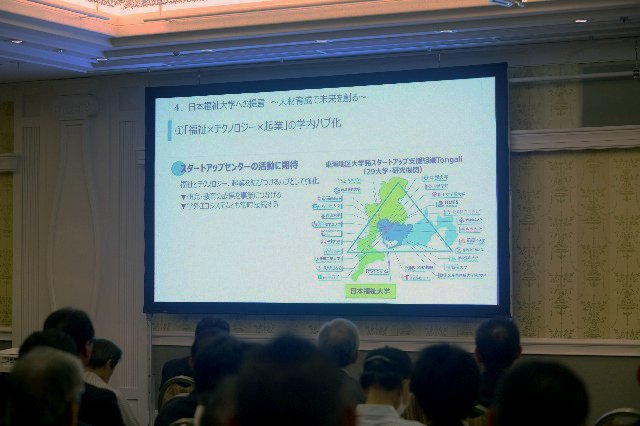 まず、今年度開設した本学スタートアップセンターの活動について期待を寄せていただきました。学外エコシステムとも常時接続して、研究・教育の成果を事業につなげ、福祉とテクノロジー、起業を結びつけるハブとして強化していくことが重要だとご示唆いただきました。また、冒頭、谷地経済学部長から説明のあったPBLの事例にも触れて、学生たちが在学中から自治体や企業の課題に挑み、留学生や障害のある学生、社会人学生など、多様な学び手が挑戦できる環境を整え、共創と実装を経験していくことの重要性を強調されました。
