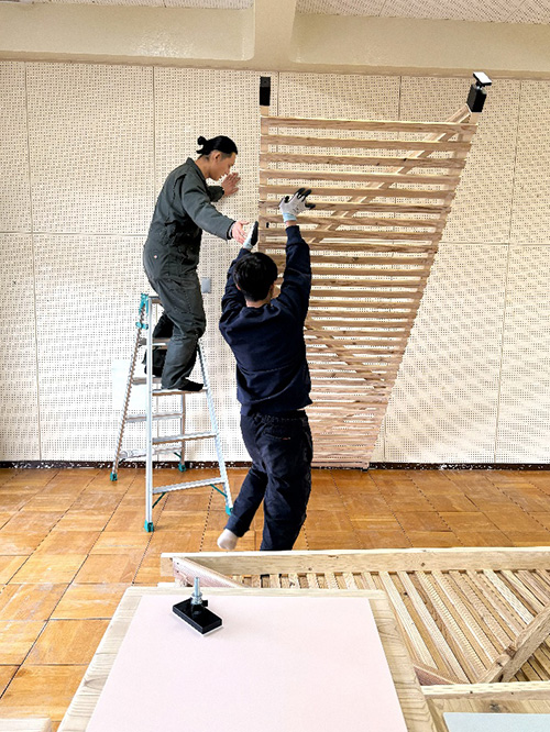 工学部建築学専修の坂口大史研究室が中心となり、今年度東海市立平洲保育園の木質化に取り組み、12月15日に施工・設置を完了しました。
