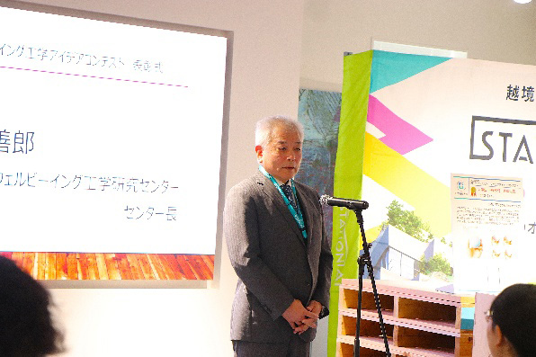 開会にあたり、ウェルビーイング工学研究センター長の児玉善郎教授が挨拶し、受賞者へ祝意を述べるとともに、センターの概要と本コンテストの意義を紹介しました。