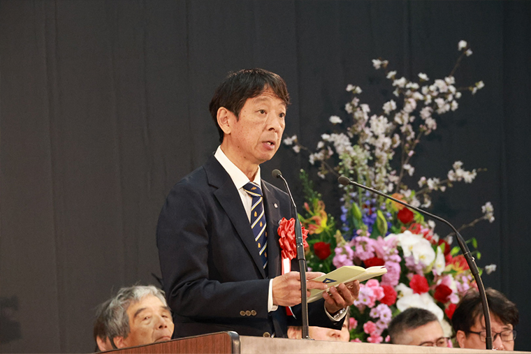 地域と大学とのつながりに触れながら、大学での学びが社会の中でどのように活かされていくかについて語られ、新入生に対して、地域との関わりを大切にしながら成長していくことへの期待が寄せられました。