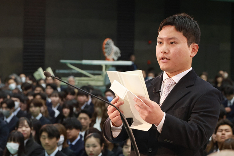 これまで支えてくれた人々への感謝とともに、本学での学びを通じて専門性を高め、社会に貢献していく決意が、まっすぐな言葉で表現されました。
