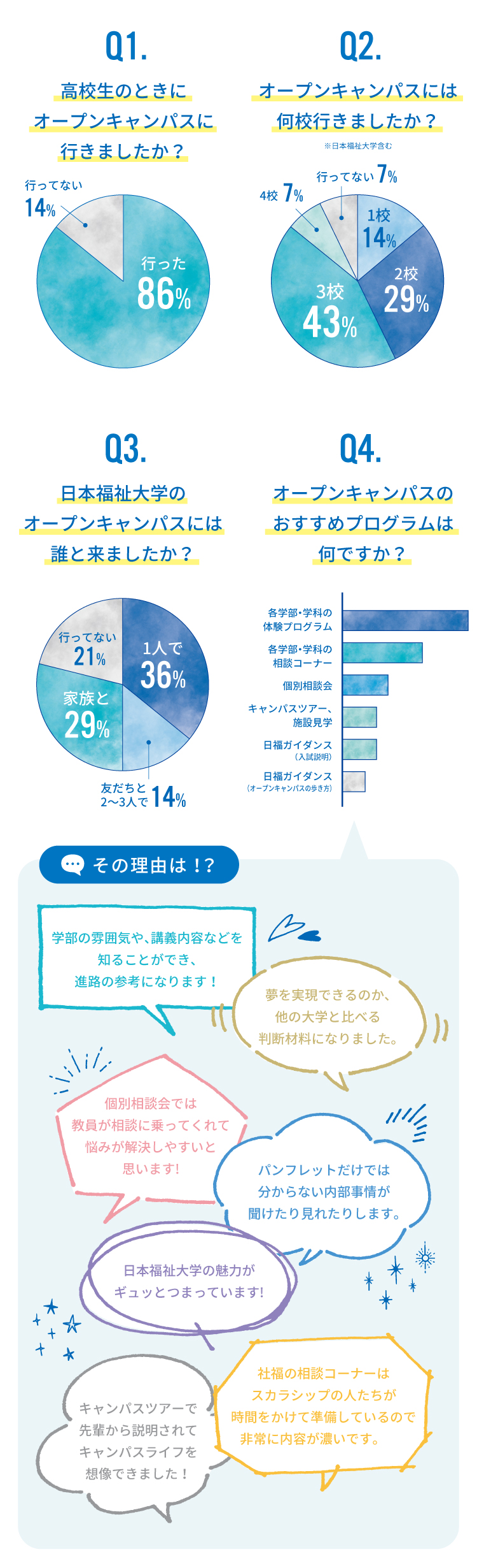 大学での学びのことはもちろん、受験のこと、キャンパスライフのことなど、