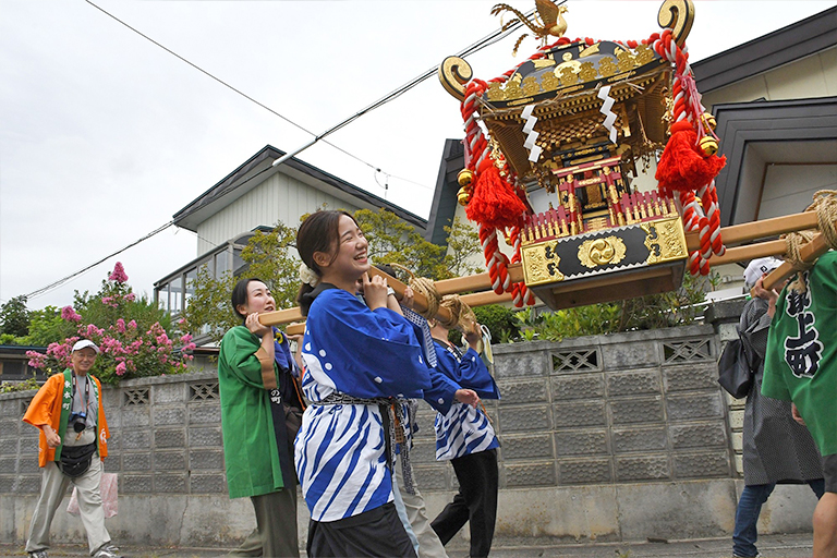 伝統行事「最上祭り」で神輿を担いだり最上町音頭を踊ったりと、祭りの盛り上げに一役買いました