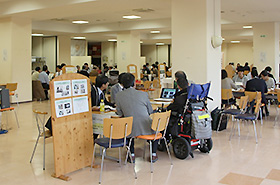 ワールドカフェには、学内外の11団体が出展し、吉村 輝彦教授(地域連携推進室員、国際福祉開発学部教授)のコーディネートのもと、参加者は興味のある団体のテーブルを回り、熱心に意見交換を行いました。