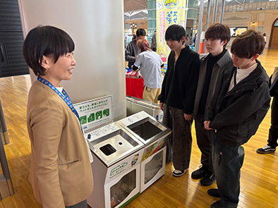 つづいて、本学が広告提供をしている、ゴミ箱の外部デザインの現地確認を行いました。
