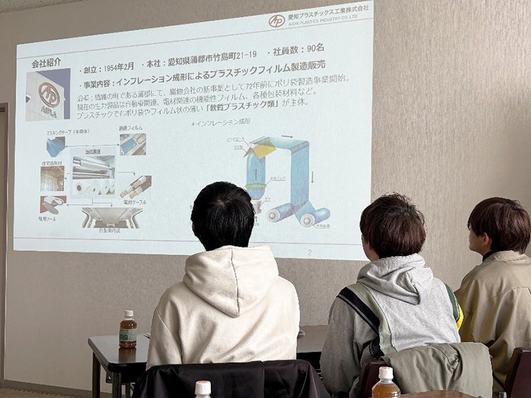 トップページ 教育 学部・学科・大学院 経済学部 経済学部 お知らせ 【広報大使活動報告②】中部国際空港との産学連携協定締結10周年記念企画として、空港や航空会社で発生するプラスチックを回収し、原料化・成形して再び製品として活用する、産業連携型の資源循環スキームを学ぶために愛知プラスチックス工業株式会社を訪問しました