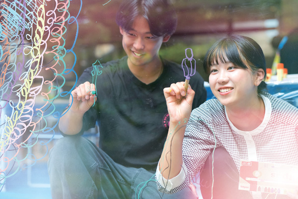 3学科の学びの融合を重視し、学科を問わず履修できる科目を多数用意しています。1年次の総合演習では3学科合同のゼミナール活動を行い、異なる視点を持つ学生同士で語り合い視野を広げます。