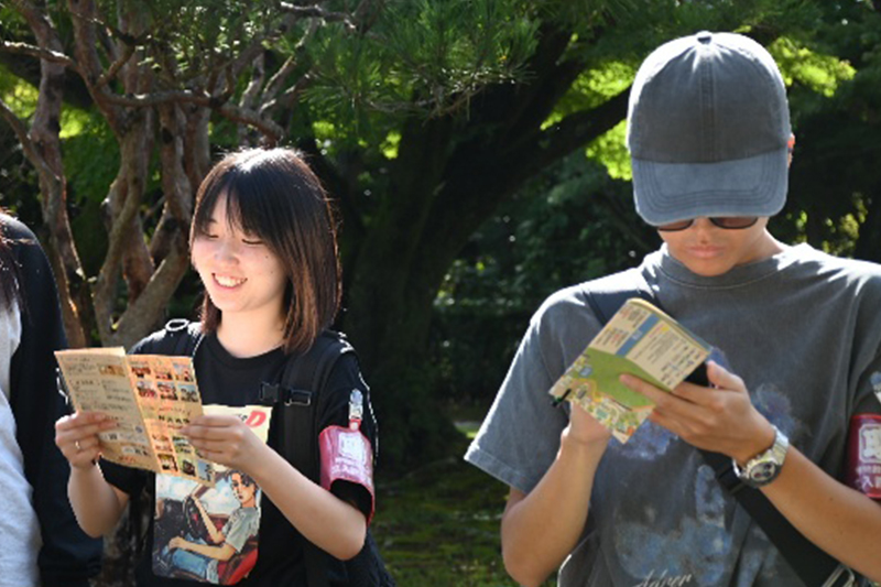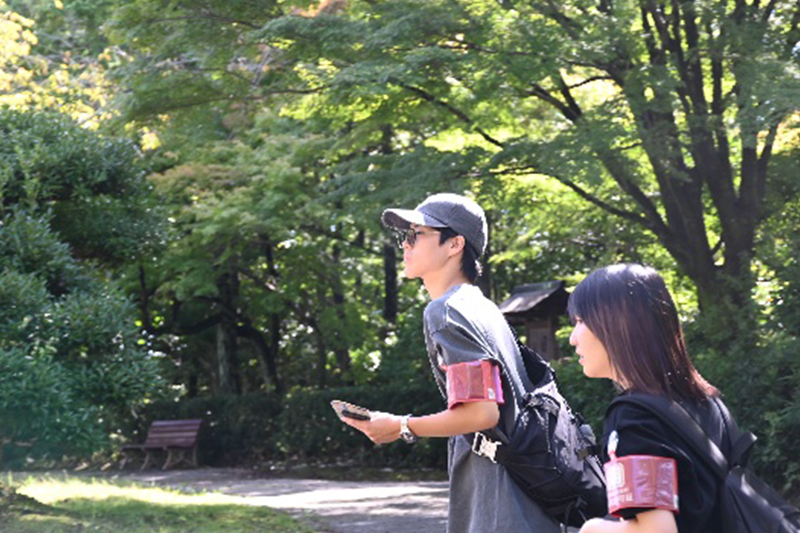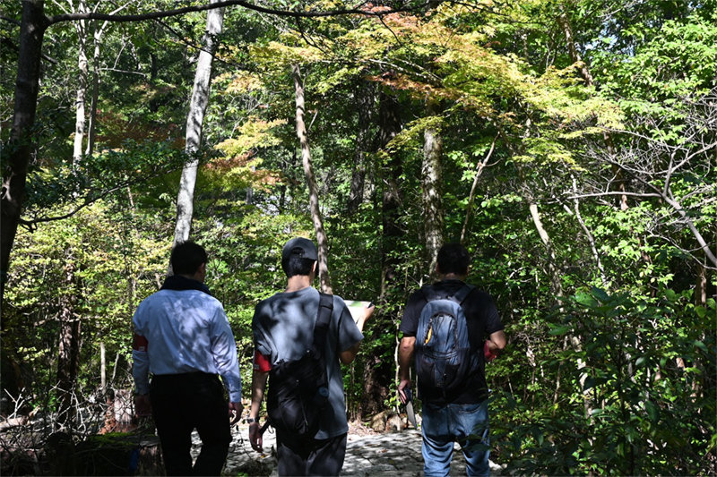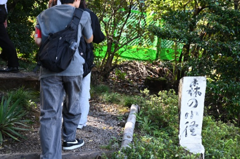 普段は、なかなか入ることのない、森の小径や日本庭園の中なども隈なく散策し、歴史的な建物や関係のある偉人、植栽とを掛け合わせて新たな魅力が作れないか、様々なアイデアを先生と学生たちで話し合いました。