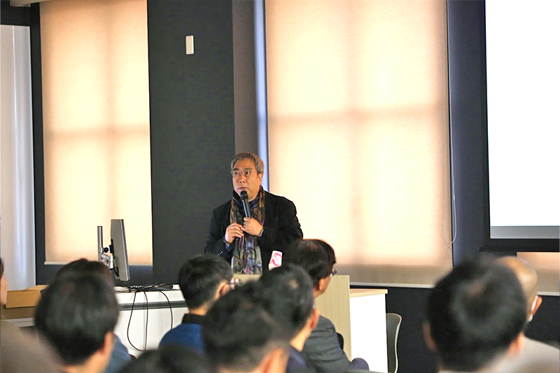 佐々木先生からは、当時の情報社会科学部について学生や半田キャンパスの行事等に多く触れていただきながら『建物』や『街並み』等を中心に、8年間における調査•研究活動紹介、また早稲田大学へ移籍された後の調査•研究活動、土木学会における活動についても、多くの写真やスライドを用いて、佐々木先生の研究内容についてご紹介をいただきました。