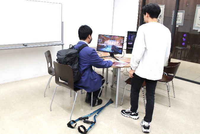 芸術劇場に勉強に来ていた中学生、高校生らが息抜きで参加。ゲームとシニアの健康の関係や行政での取り組みについて説明すると、「シニアeSports」ということに興味を持ってくれました。「VALORANT」をプレイするのは、「初めて」と言いつつ、操作はとても上手でした。