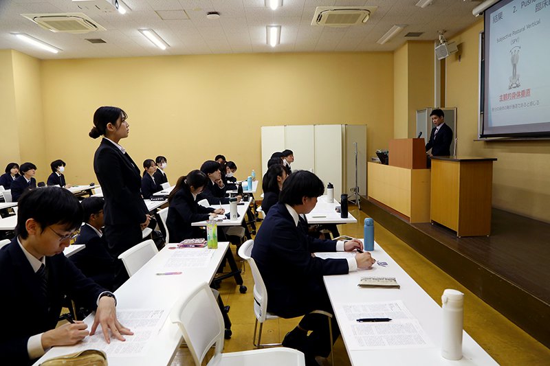 10月16日(木)に、リハビリテーション学科作業療法学専攻の第15期生の卒業研究発表会が実施されました。多数の教員・学生が出席する中、33名の4年生が発表に臨みました。