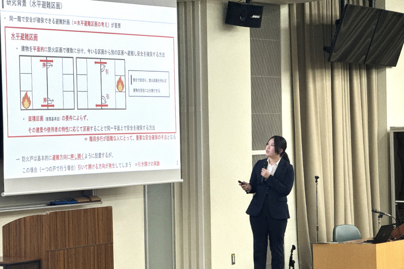 1月29日(木)に情報工学専修(26名)、建築バリアフリー専修(38名)の卒業研究発表会が開催されました。各学生の研究発表後に質疑応答の時間が設けられ、教員、学生たちより活発な意見交換がなされ、期にわたる研究の成果を発揮することができ、大変充実した時間を過ごすことができました。