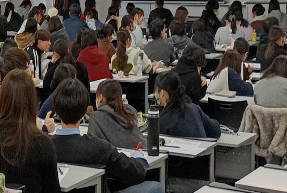 入学してから10ヶ月経ち、いよいよ基礎看護学実習目前、患者様とのコミュニケーションの練習並びに看護師としての職場を知って今後のキャリアに関心を持つことを目的としたガイダンスを行いました。マイナビとの共催で行った学生同士のロールプレイでは、自分の「聞き方の癖」に気づくことで、主観を入れずに聴くことの難しさと重要性を実感していました。また、得た情報をまとめて報告することを体験し、今後の実習に活かしていきたいといった声がありました。来年度、2年生からは、自分の描きたい看護師像を考えながら、病院見学をしていくことも伝えました。