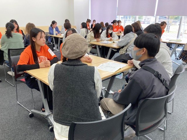 在学生からは授業や実習、日常の過ごし方など大学生活についての話があり、参加者は熱心に聞き入っていました。
