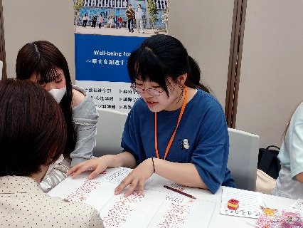 ボードゲーム班は、認知症や支援する人の立場を疑似体験できるボードゲーム「思い出の足跡」を紹介。体験者からは「ルールをもっと分かりやすく」といった改善点もいただき、次の開発に向けたヒントを得ました。