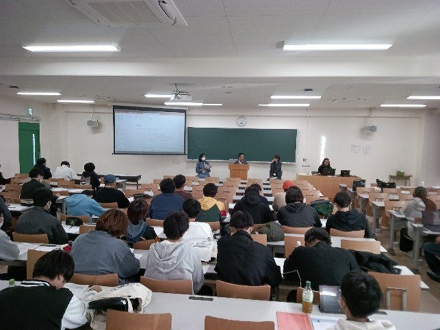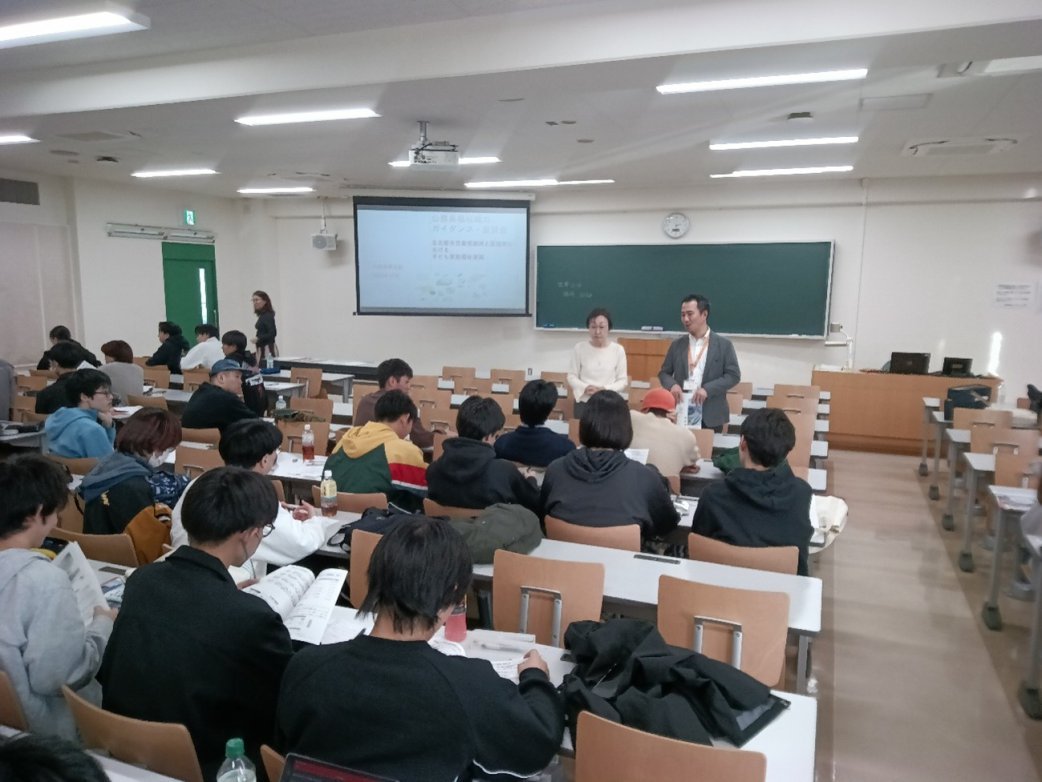 11月10日(月)に社会福祉学部行政専修3年次「社会福祉専門演習Ⅰ」(学年合同ゼミ)において、名古屋市の福祉職の方3名をお招きし講演会および座談会が行われました。