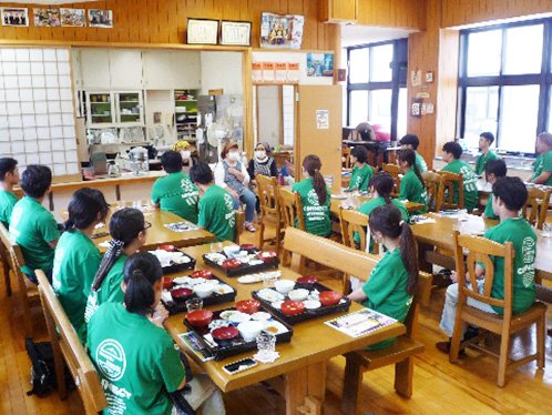 昼は、閉校になった小学校校舎を活用した農家レストラン「たらふく工房満沢」で郷土料理を味わいながら活動事例をお聞きしました。夜には芋煮の試作も行い、山形の郷土料理や食文化への理解を深めました。