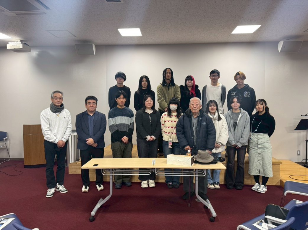 1日目は、福岡県にある筑前町立大刀洗平和記念館へ訪問し、学芸員の方から旧陸軍大刀洗飛行場や特攻隊の歴史、第二次世界大戦当時の日本の社会背景についてお話を聞きました。あわせて、実際に特攻隊員(振武隊隊員)として訓練を受けていた鳥谷邦武さんより、当時の訓練の様子や戦争体験について直接お話を伺いました。自分たちの目と耳で直接戦争の歴史に触れることで、戦争の現実や悲惨さ、平和とは何かを改めて考える貴重な機会となりました。