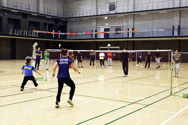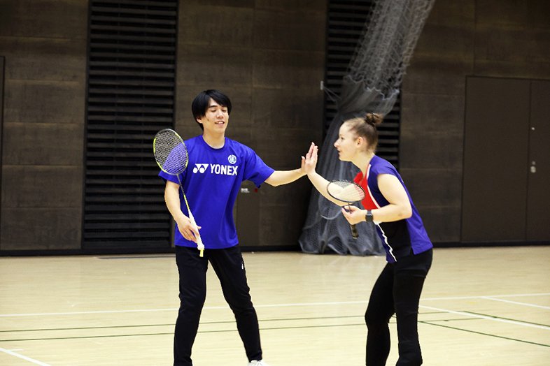 紛争下のウクライナ選手が本学でトレーニング -スポーツ科学部「バドミントン指導法演習」にウクライナ代表選手が参加 -