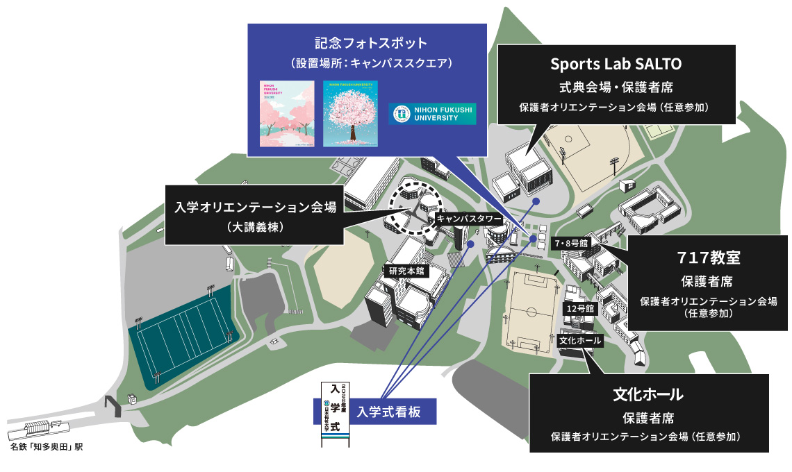 みなさんのご入学を祝して、式典当日、美浜キャンパス各所にフォトスポットを設置します。