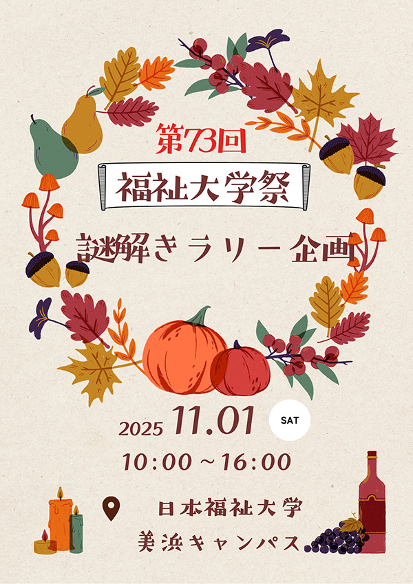 このスローガンには誰かの言葉や忘れられない思い出、困難の中で感じた誰かの想いを道標に福祉大学祭を楽しんでほしいという思いが込められています。
