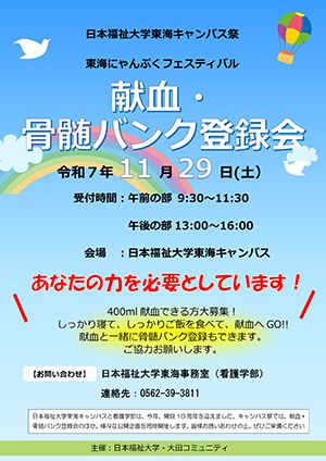 - 輸血に必要な献血の確保と白血病患者への骨髄移植のドナー登録