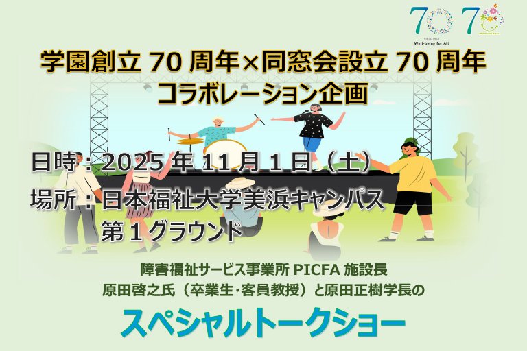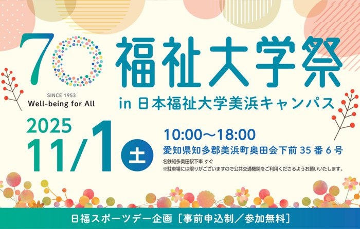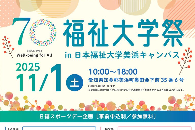 日本で最初の4年制社会福祉学部を開設し、ふくし(ふつうのくらしのしあわせ)を追求し続ける大学として、特徴をもつ市町のある知多半島の地の利を生かした、研究・教育環境づくりを行ってきました。また次世代に対するふくしへの気づきの提供、多領域との連携を図りながら、すべての人のふくしの実現を目ざします。