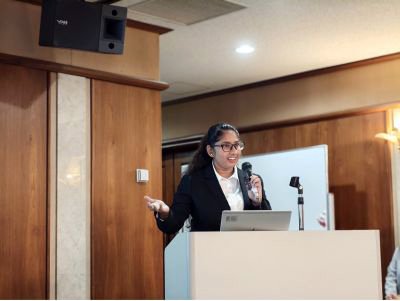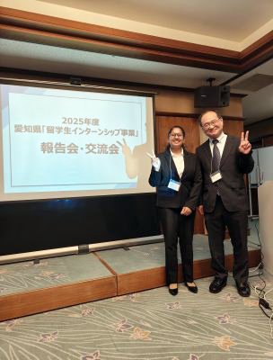 10月28日(火)にあいち国際プラザで開催された2025年度 愛知県「留学生インターンシップ事業」報告会・交流会で、経済学部2年生のWANNIARACHCHI KANKANAMALAGE DIVANJALI NIMREKHA WANNIARACHCHI(ディワー)さんが、今夏に行われたインターンシップでの体験談を報告しました。