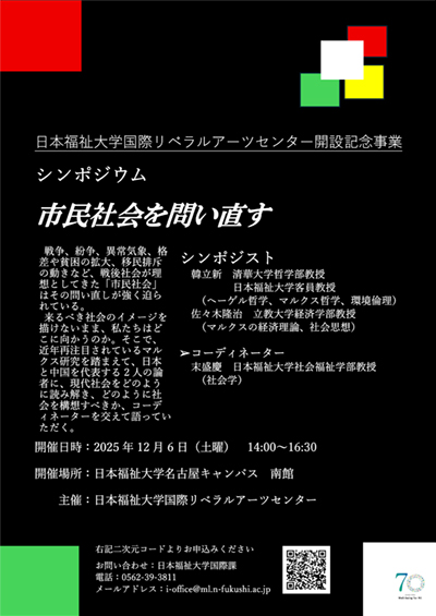 日本福祉大学国際リベラルアーツセンター開設記念事業シンポジウム 市民社会を問い直す