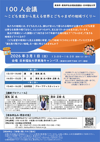東海市・東海市社会福祉協議会・日本福祉大学「100人会議~こども食堂から見える世界とごちゃまぜの地域づくり~」
