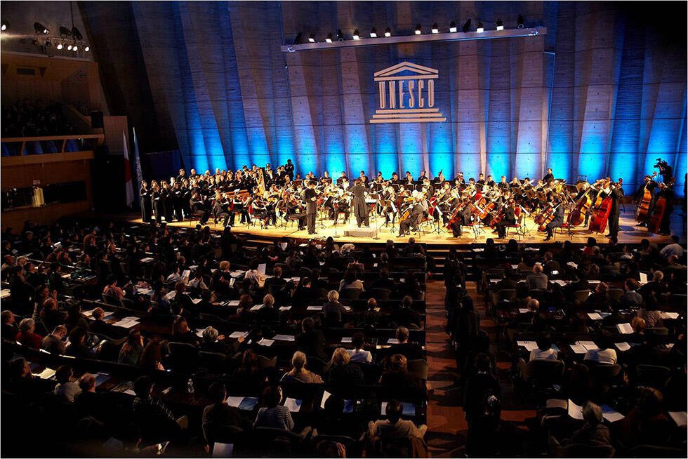 また、世界各国から寄せられた支援へのお礼と感謝として、今年3月11日にパリのユネスコ本部で演奏会を開催しました。ここでは、この日のためだけに結成されたヨーロッパの一流の音楽家たちによる「ジャポネード・オーケストラ」の演奏もありました。日本の元気がどんどん増していくことを願って最後に「ボレロ」を演奏し、アンコールでは合唱団も参加し、みんなで「故郷」を歌いました。