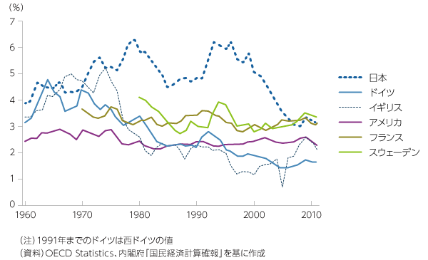 公的資本形成(一般政府総固定資本形成の対GDP比)