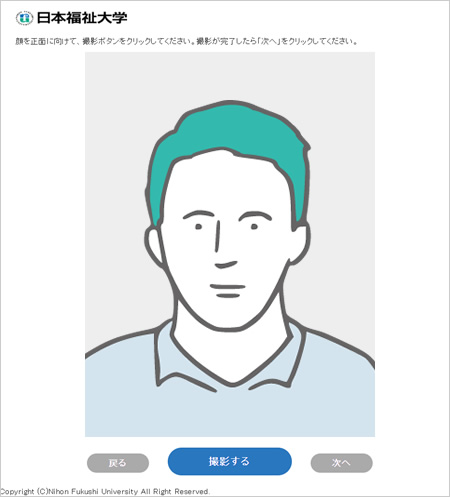 - 顔を正面に向けて枠に収まるように撮影してください。