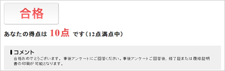 事後アンケート回答後、事務局にて試験結果を確認します。証明書の発行は、事務局での確認後となりますので、しばらくお待ちください。