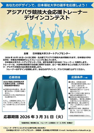 2026年02月02日 イベントあなたのデザインが選手の力に!「アジアパラ競技大会応援トレーナー デザインコンテスト」応募受付開始