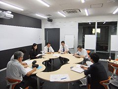 6月3日(水)午後6時から東海キャンパスにおいて、当研究所地域・産業部が中心となって「地域とCSV」ワークショップの第1回が行われました。 学内教職員や在学生、東海商工会議所の森専務理事(今年度市民研究員)、愛知学泉大学の松岡先生(本学卒業生)を交え、はじめに鈴木健司先生(地域・産業部長/経済学部准教授)から「CSRとCSVの概念」について、さらに「ソーシャルビジネスとコミュニティビジネスの違い」の話からスタートし、引き続き東海商工会議所の取り組みの紹介がありました。