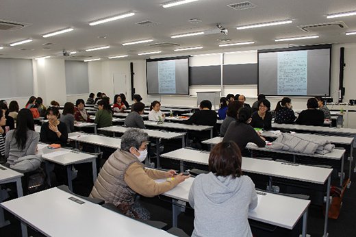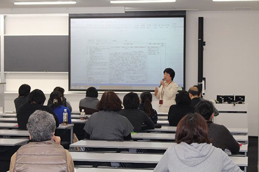2016年2月13日(土)、本学東海キャンパスにてシリーズ実習指導「第3回 老年看護学実習指導について」(講師:梅本 充子 准教授(日本福祉大学看護学部))を開催し、本学看護学部の特色や老年看護学実習に向けた準備、学生への指導上の留意点などをテーマに講演が行われ、日頃から老年看護学実習指導に携わっている看護職や本学教職員など、約75名が参加しました。