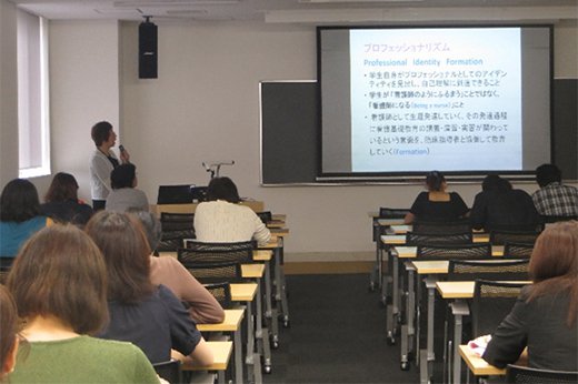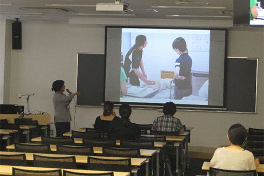 2017年7月22日(土)、本学東海キャンパスにてシリーズ実習指導「第9回 母性看護学」(講師:岡田 由香 教授、大橋 幸美 准教授)を開催し、本学看護学部の特色や臨地実習に向けた準備、学生への指導上の留意点などをテーマに講演が行われ、日頃か臨地実習指導に携わっている看護職や本学教職員など、約35名が参加しました。