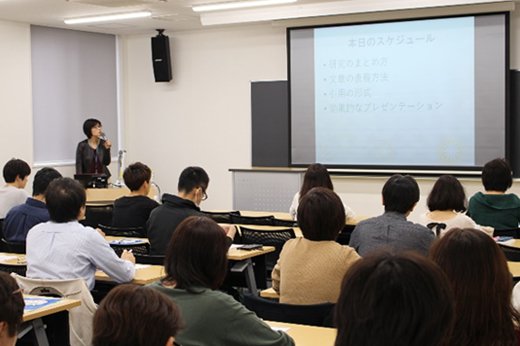 2017年11月8日(水)、本学東海キャンパスにて研究方法セミナー「研究結果のまとめ方とプレゼンテーション」(講師:白尾 久美子 教授)を開催し、看護職など約70名が参加し、研究のまとめ方、文章の表現方法等について講義が行われました。