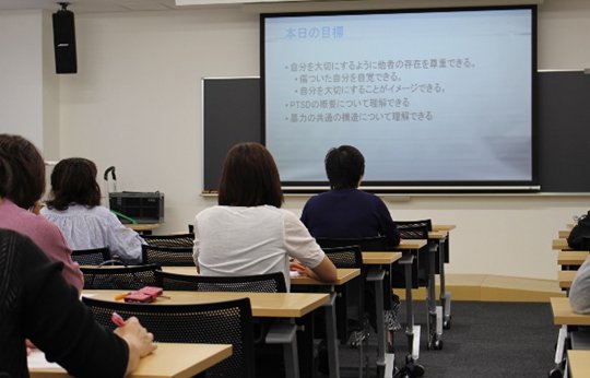 2018年5月22日(火)、本学東海キャンパスにて「アセスメントにおける暴力の視点 暴力の構造と心的外傷後ストレス障害(PTSD)の理解」(講師:長江 美代子 教授)を開催し、看護職など約20名が参加し、PTSDの概要や暴力の共通の構造などについて講義が行われました。