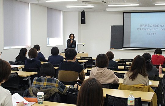 2019年11月20日(水)、本学東海キャンパスにて研究方法セミナー「研究のまとめ方とプレゼンテーション」(講師:白尾久美子教授)を開催しました。