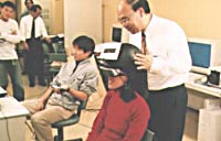 | 昨年度当研究所は, 日本電子機械工業会から 「3次元映像の生体影響に関する評価方法について」 というテーマで研究受託いたしましたが, 今年度も同工業会から引き続き 「視覚系総合生体影響評価システム機器の開発」 および 「3次元映像の生体影響 (視覚系) に関するガイドライン策定の基礎となる生体影響評価方法について」 の2テーマでの研究を受託いたしました. 研究代表者は前回同様, 情報社会科学部・鵜飼一彦教授です. 研究は大詰めで, 様々な実験 (写真) の成果はこの年度末にもまとめられる予定です. |
